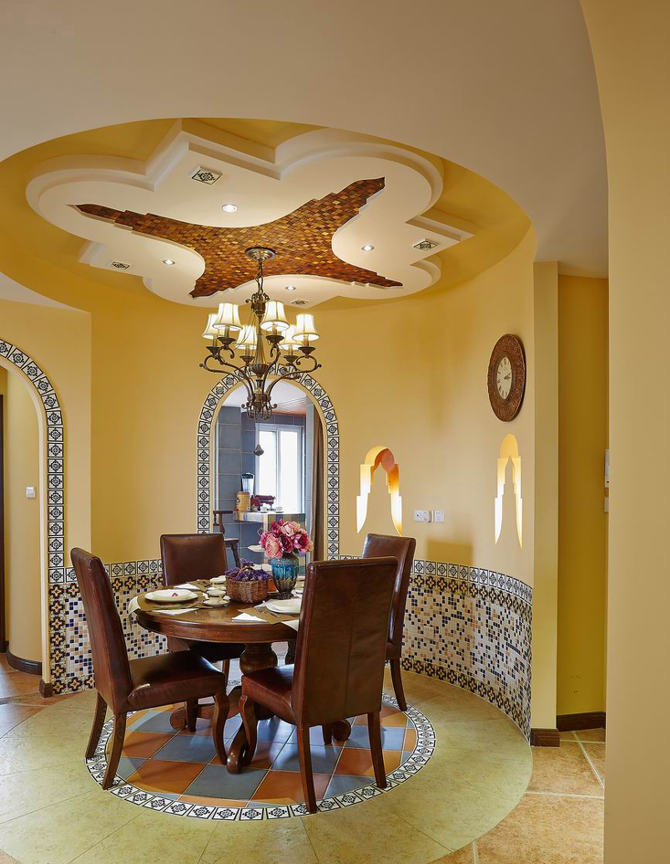 人們把摩洛哥這個國家稱為“北非花園”。具有異域風情的摩洛哥風格,裝飾華麗是它的特色。這個空間則以精致雕刻的線條,色彩活潑的瓷磚,創意獨特的吊頂,夢幻般神秘的臥室,令其充滿異國情調,又充斥著溫馨的氣息,它用自己獨有的顏色來表達對生活的熱情和歲月的沉淀。